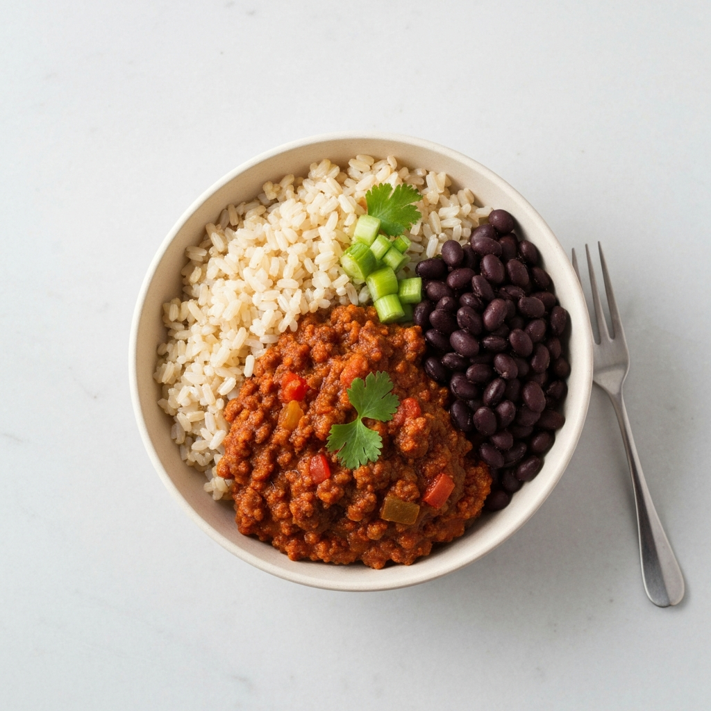 Chili Burrito Bowls with Brown Rice and Black Beans