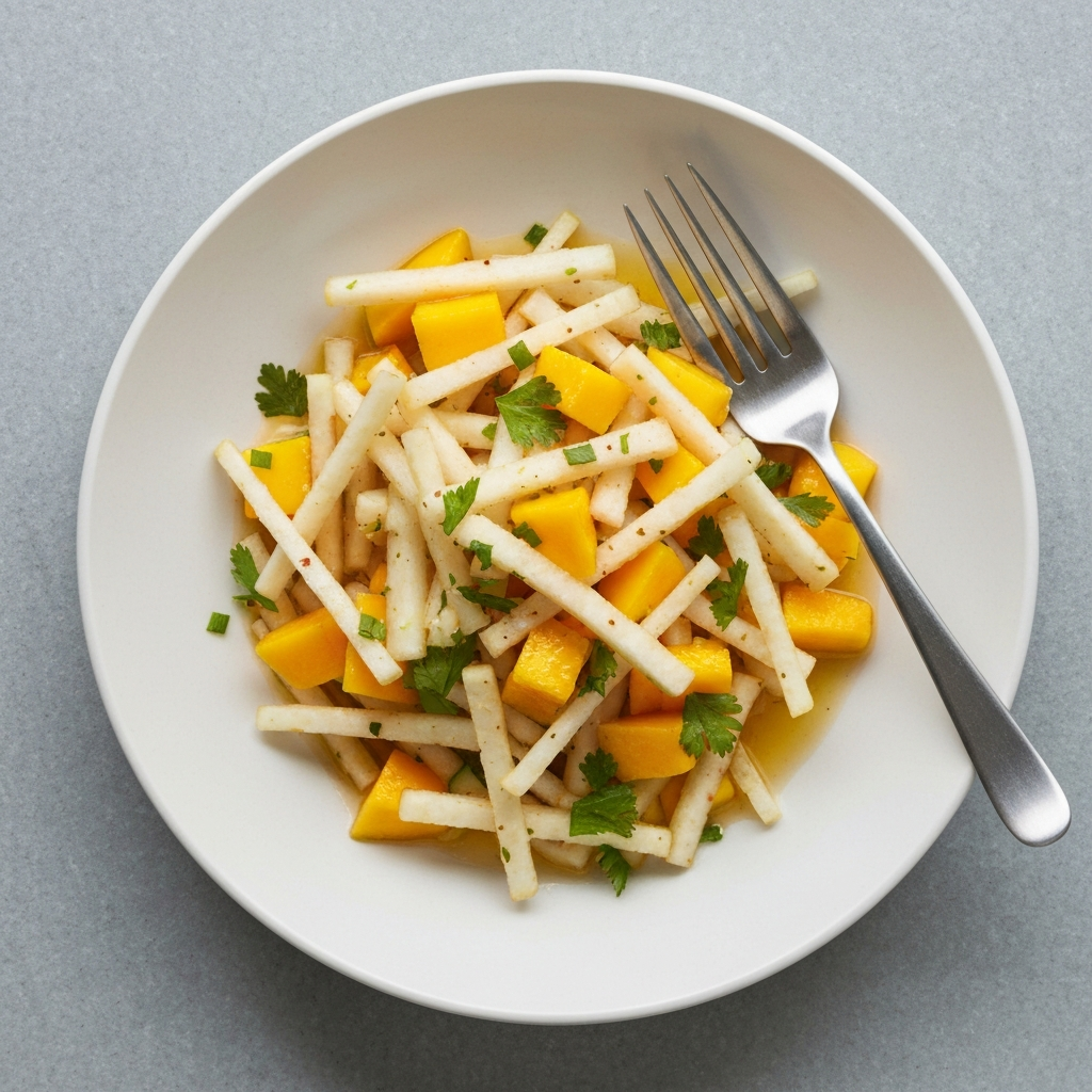 A refreshing and vibrant salad featuring sweet mango, crisp jicama, and a spicy lime vinaigrette. Perfect as a light starter or side dish, especially when paired with rich or savory main courses.