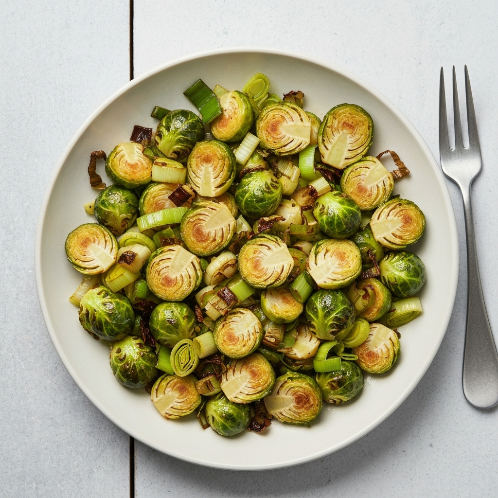 A simple and flavorful side dish featuring roasted Brussels sprouts and leeks, tossed in a bright lemon-garlic dressing. Perfect for a weeknight meal or a holiday gathering.