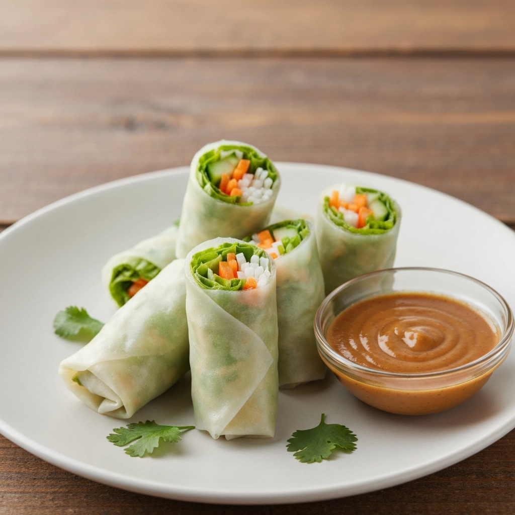 Light and refreshing spring rolls filled with crisp vegetables and served with a savory-sweet peanut-hoisin dipping sauce. Perfect as a starter or light lunch.