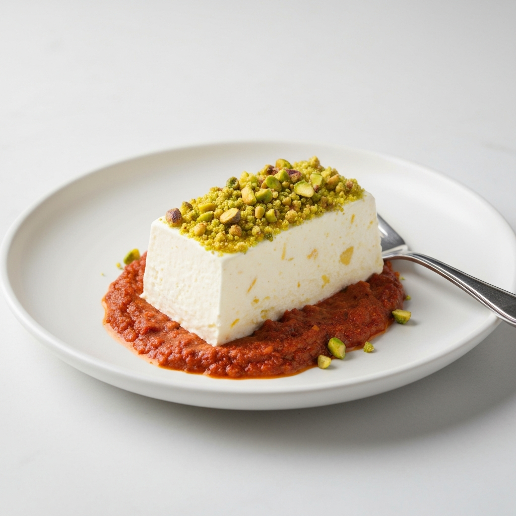 A light and refreshing Italian dessert featuring creamy lemon and ricotta semifreddo topped with a crunchy pistachio crumble. Perfectly paired with a rich and savory dish like Parmigiana.